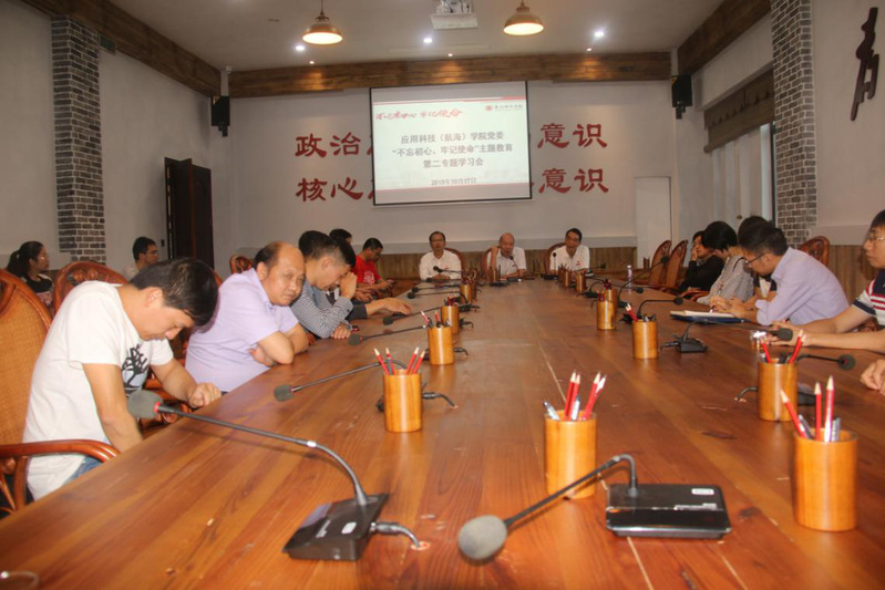 10月17日,应用科技(航海)学院教师党员赴永春党内政治生活体验馆开展“不忘初心、牢记使命”主题教育第二专题“坚定理想信念”学习研讨,会议由学院党委书记苏国柱主持,诗山管委会常务副主任黄昆民作主要发言。