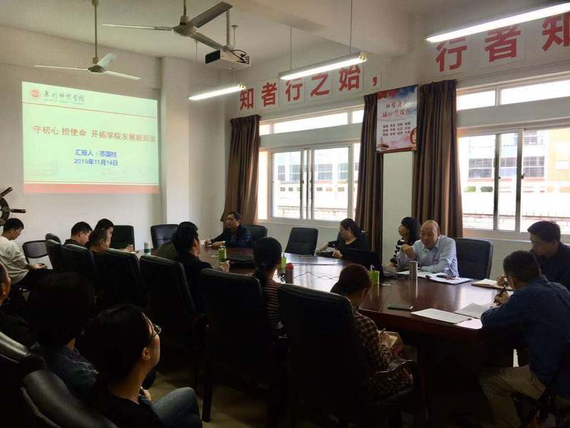 苏国柱指出,学院要发展,第一要加强内涵建设,提高教育教学质量,第二要稳步开展社会服务,增强我院为地方经济服务能力,第三要加强学生管理,促进学生成长成才。同时,号召全院教职员工守初心、担使命,为实现学校“三步走”发展战略贡献自己的力量。