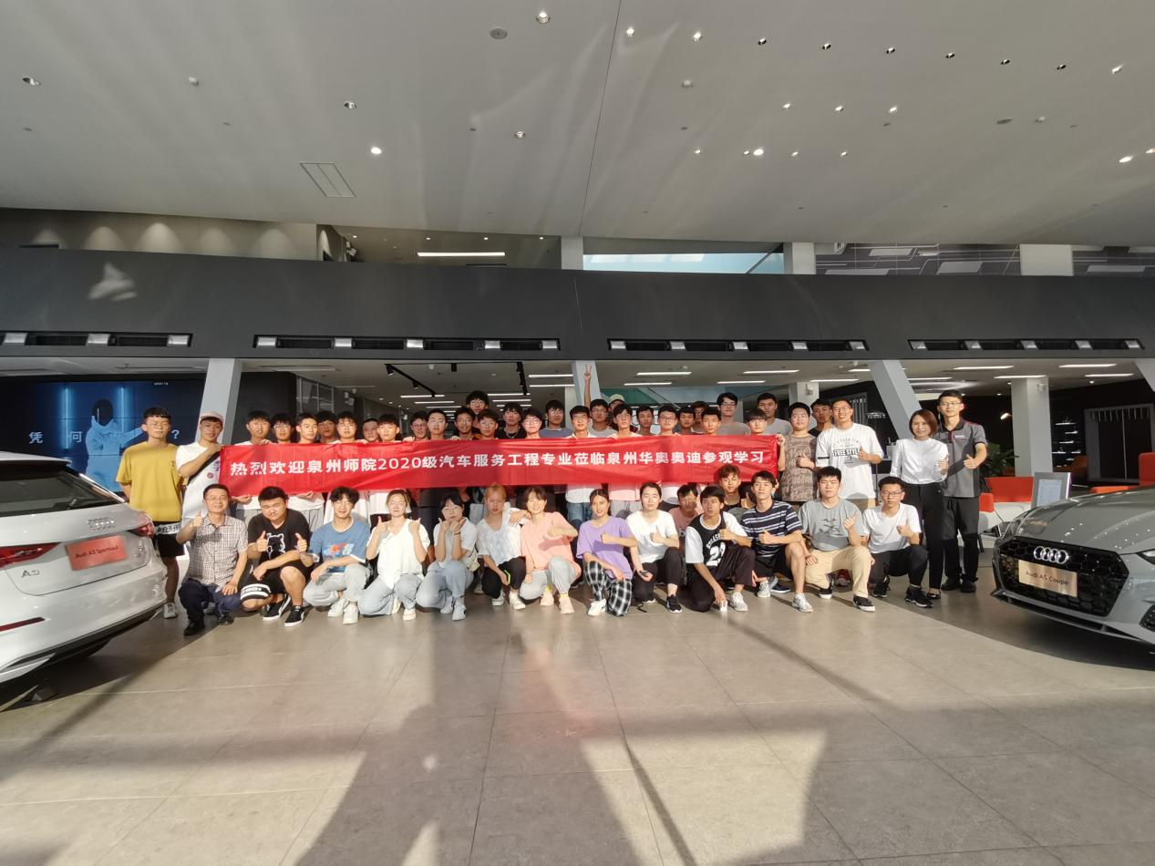 为了让学生更加深入了解和掌握专业知识,巩固和吸收已学过的专业课程内容,同时使学生更早地了解自己专业实践相关知识,对汽车服务行业有一个相对综合的感性认识,2021年5月26日,我院2020级汽车服务工程全体同学在专业主任邓腾树老师和专业教师戴文攀两位老师的带领下,到南环路大霞美汽贸城园区华奥奥迪4s店进行参观交流。