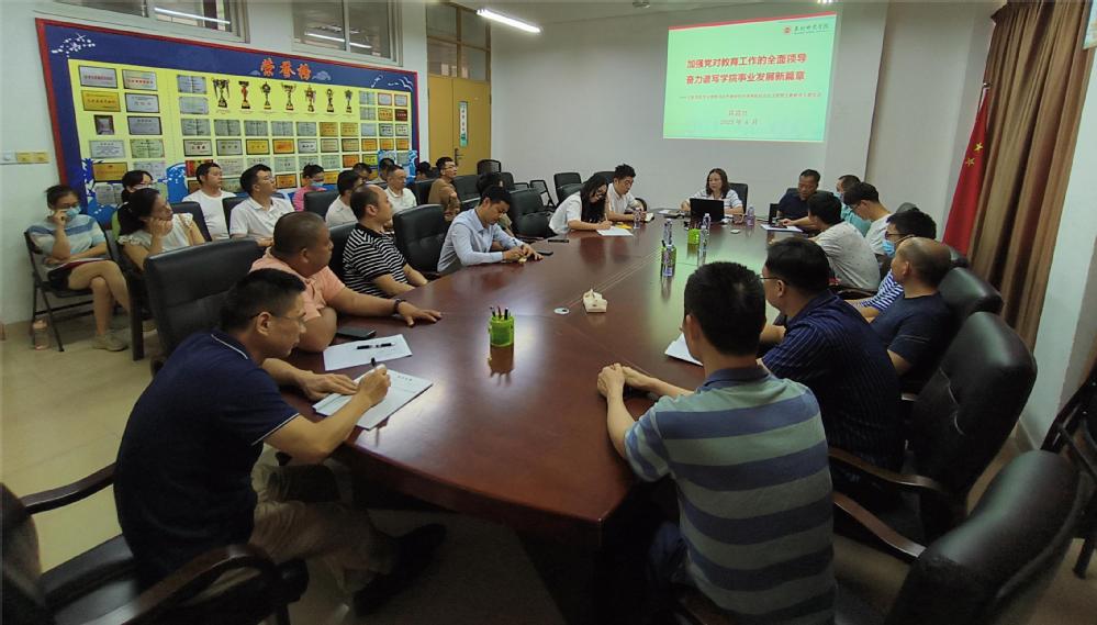 党课上,陈霞红以《加强党对教育工作的全面领导 奋力谱写学院事业发展新篇章》为题,以党的二十大精神为指导,围绕“习近平总书记关于教育的重要论述的重大意义”“习近平总书记关于教育的重要论述的科学内涵”“深学笃用教育论述 推进学院事业高质量发展”三个方面,通过自身学习体会和实践经验,对《深入学习习近平总书记关于教育的重要论述》、中共中央政治局5月29日下午就建设教育强国进行第五次集体学习的主要精神进行了详细具体的解读和诠释,并结合工作实际,对学院师资队伍建设、人才培养、学科建设、课程思政、对外合作、基层组织建设等提出思路和要求。