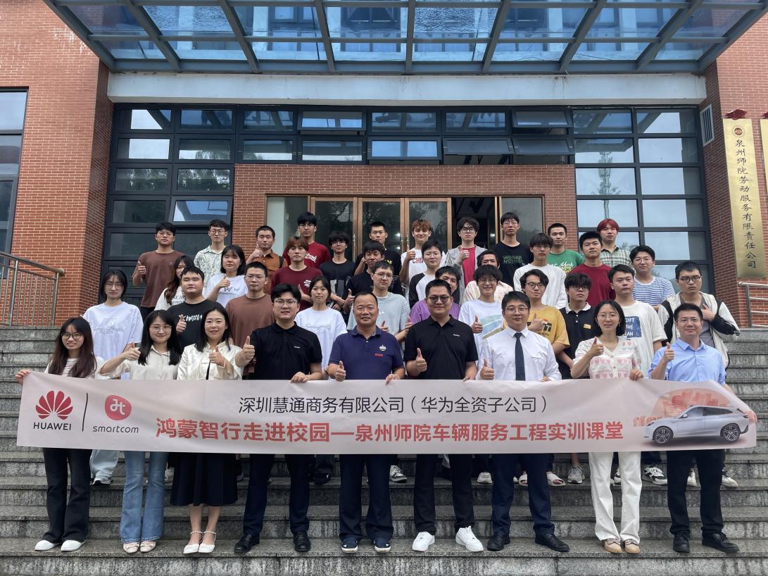 2024530日上午,深圳慧通商务有限公司(华为全资子公司)泉州HR负责人庄惠云带领鸿蒙智行泉州体验中心培训师裴春雨、中骏世界城体验店店长曾晓峰、浦西万达体验店店长潘志阳、晋江SM体验店店长尤综艺,携手旗下热销车型智界S7、问界M5以及新款问界M5,走进我院汽车服务工程专业与21级学生展开了一场别开生面的实践教学活动。此次活动作为汽车市场营销实训的重要内容,旨在通过实际案例和模拟实训,提升学生的汽车销售专业能力和市场洞察力。