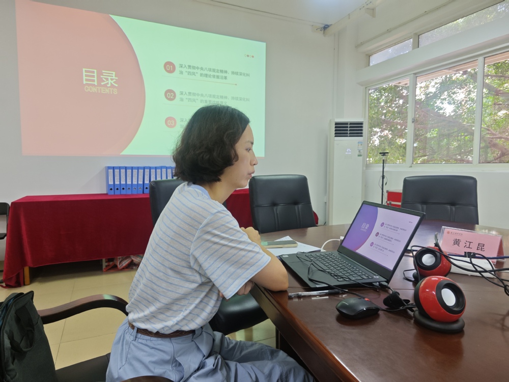 为持续深化作风建设,6月12日,交航学院教工党支部在理工楼217会议室举办专题党课。党支部书记黄梅红以“深入贯彻中央八项规定精神,持续深化纠治‘四风’”为主题,带领全体党员教师开展了一场深刻的理论学习与实践研讨。