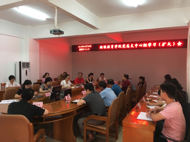 9月30日,继续教育学院在特教大楼303会议室举行党总支中心组学习会,传达学习福建省组织工作会议精神以及校党委中心组扩大学习会上中国青年报高级记者、中国青年报福建记者站站长陈强做的《学习贯彻新思想 做好高校网络舆论工作》专题辅导报告精神。院领导陈秋燕、陈建宁,各科室相关人员参加学习会。书记陈建宁主持会议。