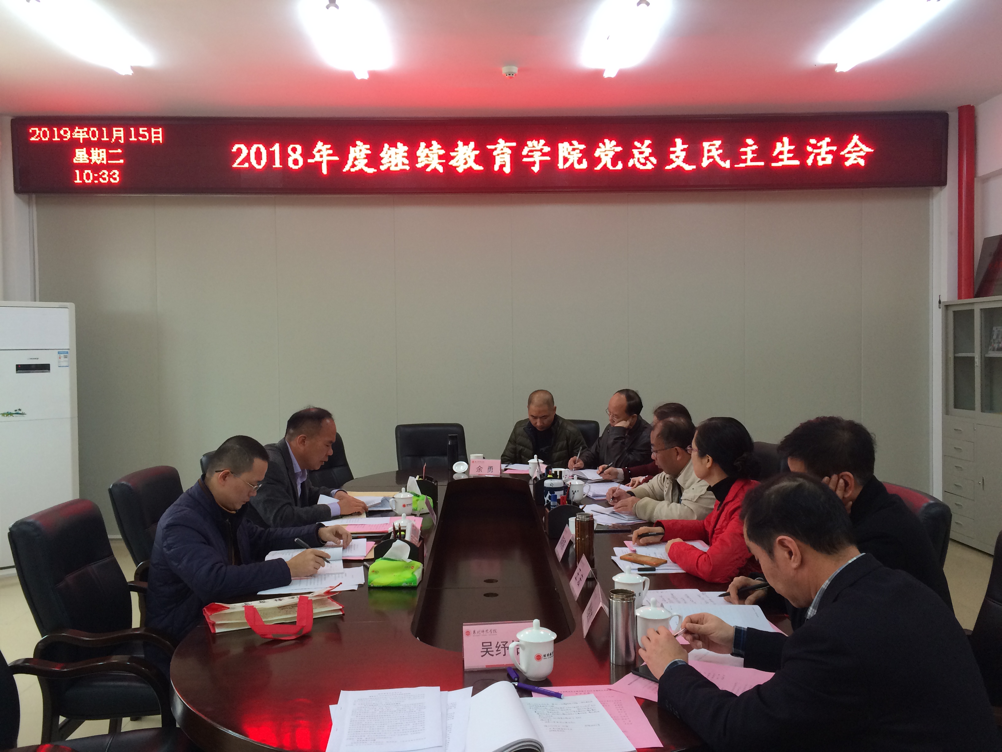 根据校纪委和校党委组织部《关于开好2018年度处级以上党员领导干部民主生活会的通知》精神,1月15日上午,继续教育学院党总支2018年度民主生活会在特教楼6楼会议室召开。校党委常委、副校长陈亚兵出席会议并进行点评和指导。校党委组织部副部长曾碧辉参加会议并进行督查。会议由继续教育学院党总支书记陈建宁主持。