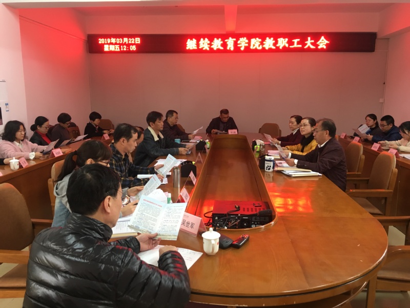 3月22日上午,我院在特教大楼3楼会议室召开新学期全院教职工大会,专题学习《新时代高校教师职业行为十项准则》、《教育部关于高校教师师德失范行为处理的指导意见》。会议由学院党总支书记陈建宁主持。