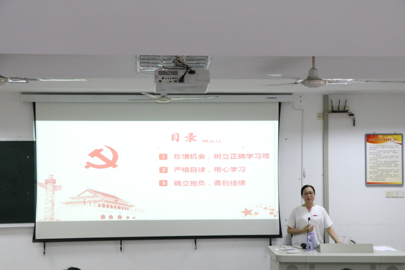 9月10日下午,继续教育处处长、继续教育学院院长陈秋燕为2020年军转干部培训班学员上党课。党课以“不忘初心担使命,转型发展创佳绩”为主题,由继续教育学院党总支书记陈建宁主持,培训班全体学员参加。