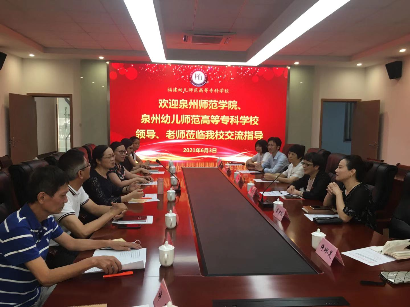 省幼高专教师教育发展学院院长薛少红对我院一行走访交流表示了热烈欢迎,并介绍了学校办学历史、办学特色及学院培训工作开展情况,省幼儿教师培训中心主任彭琦凡就“幼教师资提升工程——2021年省委省政府为民办实事项目”设计的依据、理念以及项目实施的具体要求作了详细解读。陈秋燕对薛院长等的热情接待表示感谢,介绍了此行走访交流的主要目的和重点工作,希望今后双方能进一步加强合作,推进培训项目的运行管理,拓展培训的深度和广度。与会人员就培训工作的重点难点和双方感兴趣的问题进行了深入交流,达成了统一认识。教师教育发展学院领导班子成员、泉州幼儿师范高等专科学校学前教育师资培训科负责人参加了交流座谈。