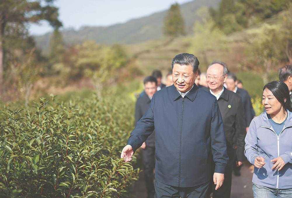 3月22日下午,习近平在南平武夷山市星村镇燕子窠生态茶园,察看春茶长势,了解当地茶产业发展情况。 新华社记者 王晔 摄