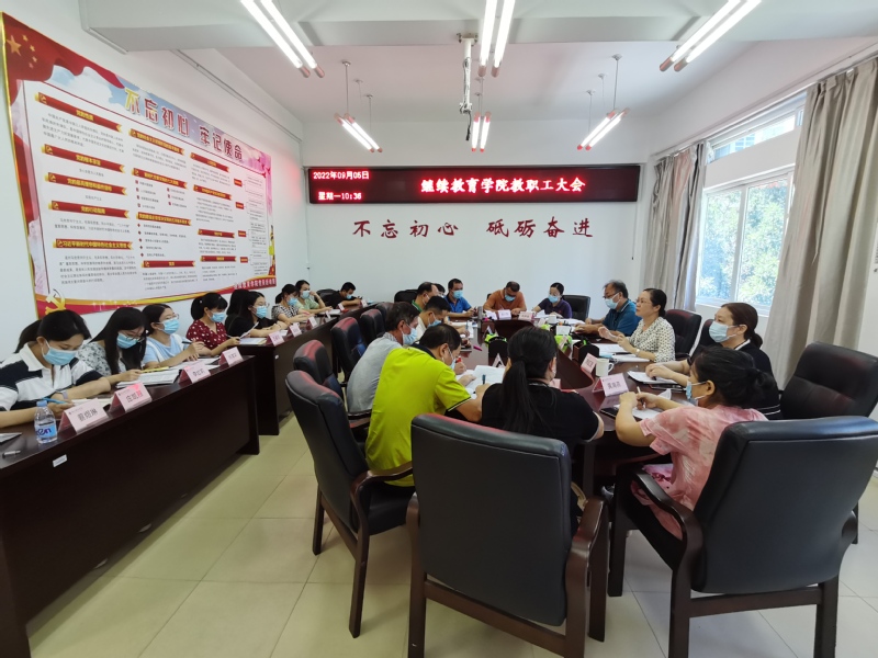 9月5日上午,学院召开全院教职工大会。会议由院长陈秋燕主持,全院教职工参加会议。