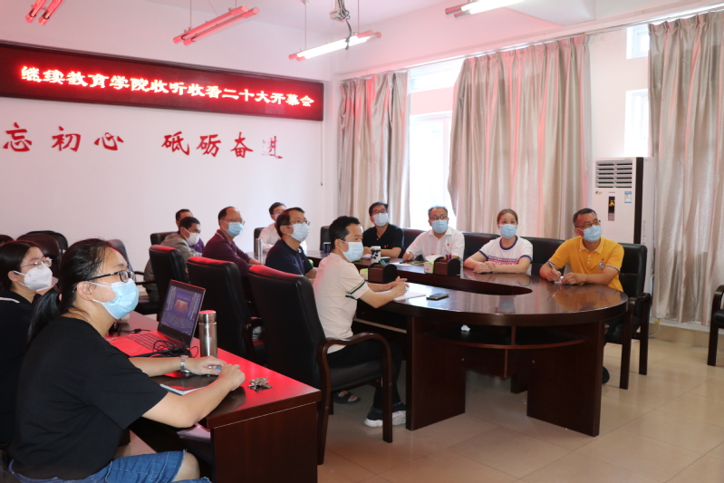 10月16日上午,中国共产党第二十次全国代表大会在北京人民大会堂隆重开幕,习近平总书记代表第十九届中央委员会向大会作报告。继续教育学院组织全体党员在文科楼A315会议室集中收看开幕会直播,认真聆听习近平总书记的重要报告。