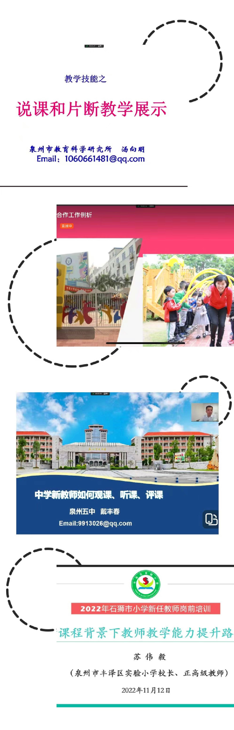11月12日至13日,石狮市2022年新入职的中小学、幼儿园教师参加由我院培训中心组织的第二阶段培训。本次培训以网络研修的形式进行。