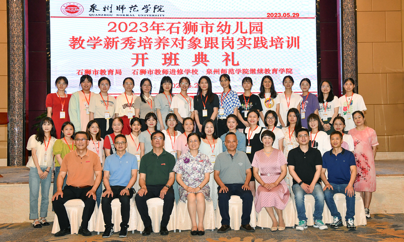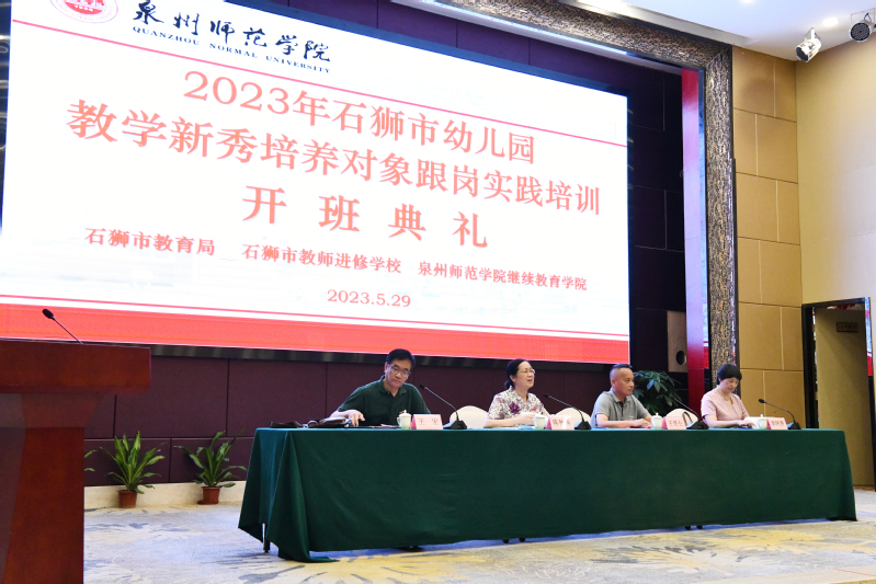 5月29日下午,由石狮市教育局、石狮市教师进修学校主办,我校承办的“2023年石狮市幼儿园教学新秀培养对象跟岗实践培训”举行开班典礼。石狮市教师进修学校校长王昆仑、泉州市刺桐幼儿园园长黄阿香和我校继续教育处处长、继续教育学院院长陈秋燕出席开班典礼。继续教育处副处长、继续教育学院副院长王宏主持开班典礼。