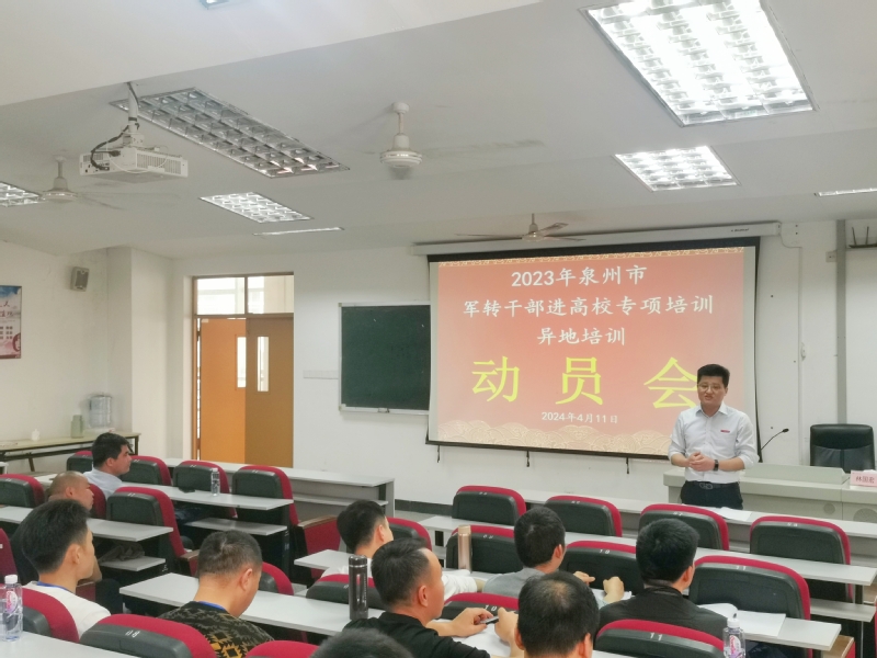 4月11日,我院召开军转干部培训班赴西安电子科技大学异地培训动员会,学院党总支书记林国宏出席并作训前动员讲话,军转干部培训班全体党员参加动员会。