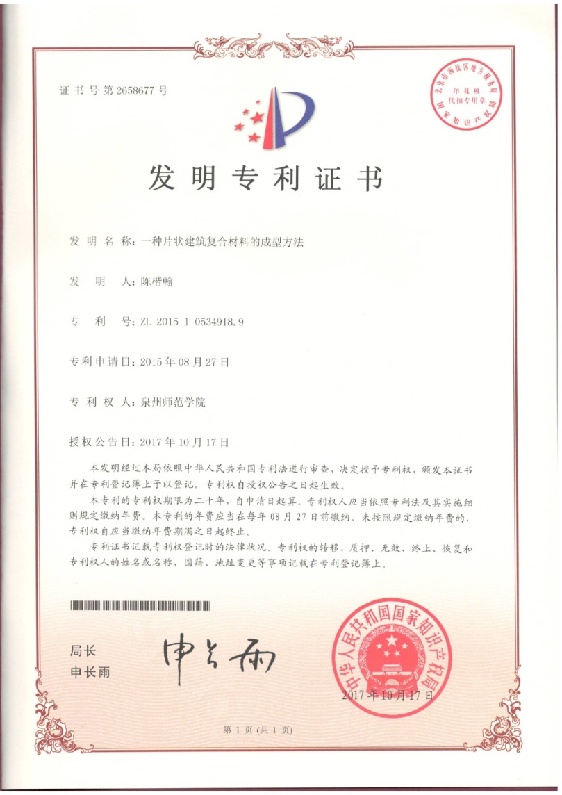 是基于振动堆积——逐步固定的技术体系上创建的,是目前国际上第一个可大规模利用天然片状材料成型高强度建筑复合材料的成型方法。有望引发预制板、基础等的产业升级。