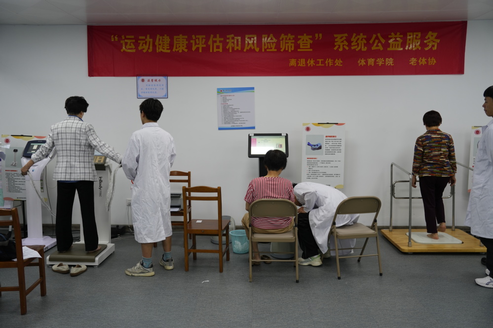 5月30日,离退休工作处联合体育学院、校老体协在文科楼运动与健康工程中心为我校离退休教职工开展“运动健康评估与风险筛查”系统公益服务活动。