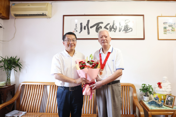 柯瑞清来到老党员庄碧川家中,为他颁发“光荣在党50年”纪念章并送上鲜花,向获得纪念章的老党员表示热烈祝贺。柯瑞清与其促膝长谈,关切询问其健康状况和生活情况,感谢各位老党员、老同志为学校发展打下的良好基础和作出的积极贡献。他指出,老党员是学校发展的见证者、参与者、奉献者。老党员们绝对忠诚的政治品格、自强不息的奋斗精神、无私奉献的家国情怀,激励着一代又一代泉师人以他们为榜样,为建设特色鲜明的一流应用型大学而努力奋斗。嘱咐大家要用心用情、精准服务,政治上多关心、生活上多照顾、精神上多关怀老同志,共同关心支持离退休干部工作、关心关爱老党员、老同志。同时,希望老党员在保重身体的同时,多提意见、多献良策,为学校事业发展贡献余热。