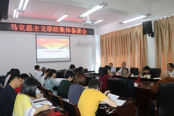 结合党史学习教育和“再学习、再调研、再落实”活动,4月22日下午,校党委副书记陈晓风到马克思主义学院参加《毛泽东思想和中国特色社会主义理论体系概论》课第十二章《全面推进国防和军队现代化》专题集体备课会,马克思主义学院负责人、各教研部主任和《概论》授课教师参加备课会。
