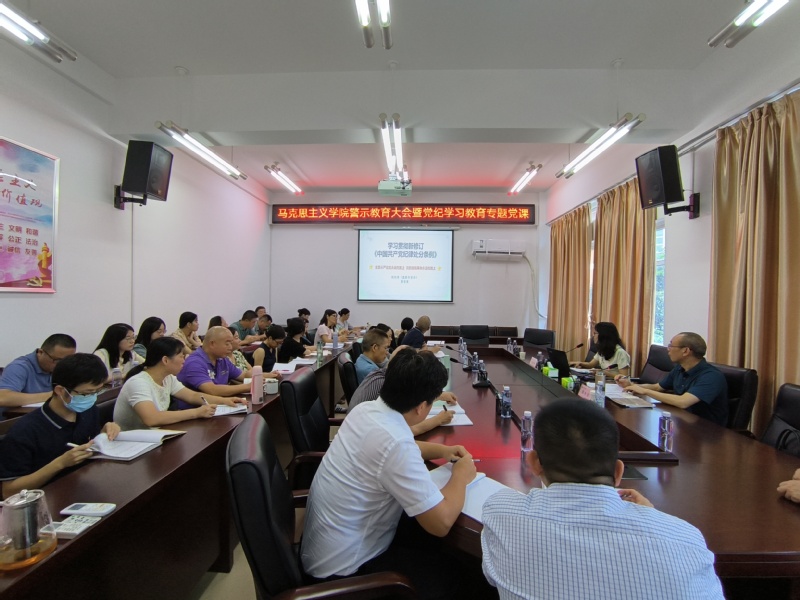 蔡雪寒从《条例》的历史沿革、《条例》新修订后的主要内容以及切实抓好贯彻执行等三个方面入手,结合高校典型违纪案例对“六大纪律”的相关条款进行深入解读。蔡雪寒强调,作为马克思主义学院的教师,不仅要在教学和科研中坚持正确的政治方向,更要在个人言行上严格遵守党的纪律,加强自我约束,为学生树立良好的榜样。