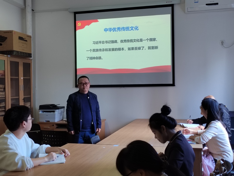 本次集体备课会由詹木生副教授主讲,他以“两个结合”为例,指出作为高校思政课教师,应该善学党的创新理论,不仅要知其然,更要知其所以然、知其所以必然。例举了中华优秀传统文化融入概论课程教学的几个关键点。“概论”课中与中华优秀传统文化在内容上具有紧密联系性,二者可以达到高度结合,中华优秀传统文化融入“概论”课教学切实具有可行性。“概论”课中如第二章第二节“新民主主义的基本纲领”的“新民主主义文化纲领”、第六章第二节“邓小平理论”的“两手抓,两手都要硬”、第七章第一节“‘三个代表’重要思想”的“始终代表中国先进文化的前进方向”、第八章第二节“科学发展观”的“推进社会主义文化强国建设”等主要内容中,都包含有文化部分。