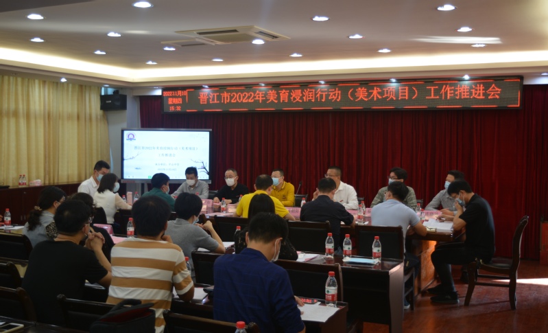 蔡朝阳副局长介绍了晋江的教育及美育情况,并就2022年美育浸润行动(美术项目)的开展情况及各镇街、各校的优势项目逐一介绍。与会人员就美育浸润行动开展情况进行了热烈的交流,提出了行动具体落实的意见和建议。