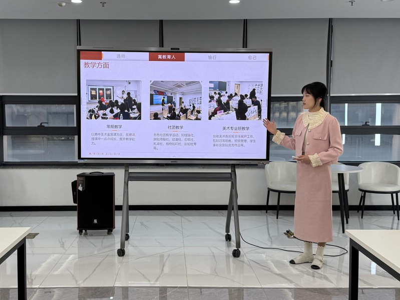 英国威廉希尔公司官网美术与设计学院的实习生代表黄忱婧上台进行结业总结发言,分享了在晋江市伟冠双语实验学校的实习心得与收获,回顾了从学生到教师、从理论到实践的双向转变,表达了对学校教育教学理念与管理模式的高度评价,并感谢我院与伟冠学校提供的宝贵实习机会。
