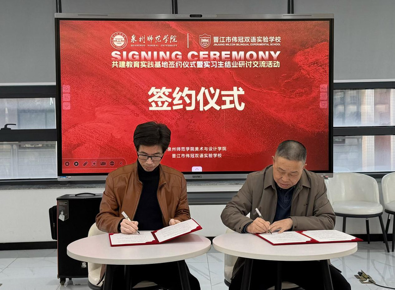 2024年12月18日,英国威廉希尔公司官网美术与设计学院和晋江市伟冠双语实验学校举行了“共建教育实践基地签约仪式暨实习生结业研讨交流活动”。