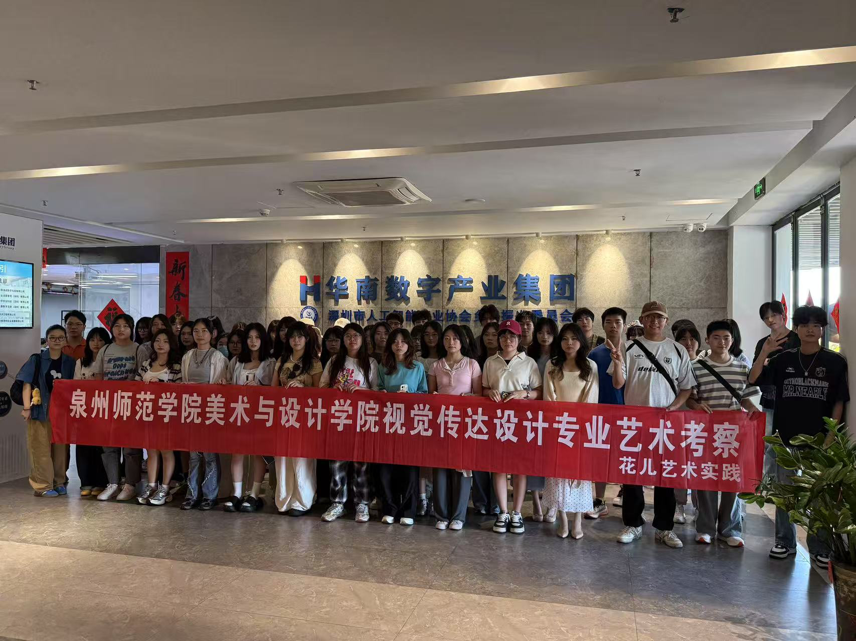在参观交流过程中,同学们深入了解了华南数字产业展馆展厅的设计理念与布局规划、数字文旅项目的创新应用、数字影片的制作流程、多媒体展示的多元化形式、互动媒体应用的前沿技术、沉浸式全息技术的震撼效果、数字党建的创新模式、智慧园区的智能化管理以及 AI 数字人的开发与应用等丰富知识。这些前沿的数字化技术和创新应用案例拓宽了同学们的视野,激发了大家对视觉传达设计与数字科技融合的浓厚兴趣和创作灵感。同样地,在分享座谈会上同学们积极与企业人员互动交流,企业人员结合实际案例和行业发展趋势,为同学们详细讲解了数字产业人才的需求特点和培养方向,进一步明确了同学们在大学期间的学习目标和努力方向。