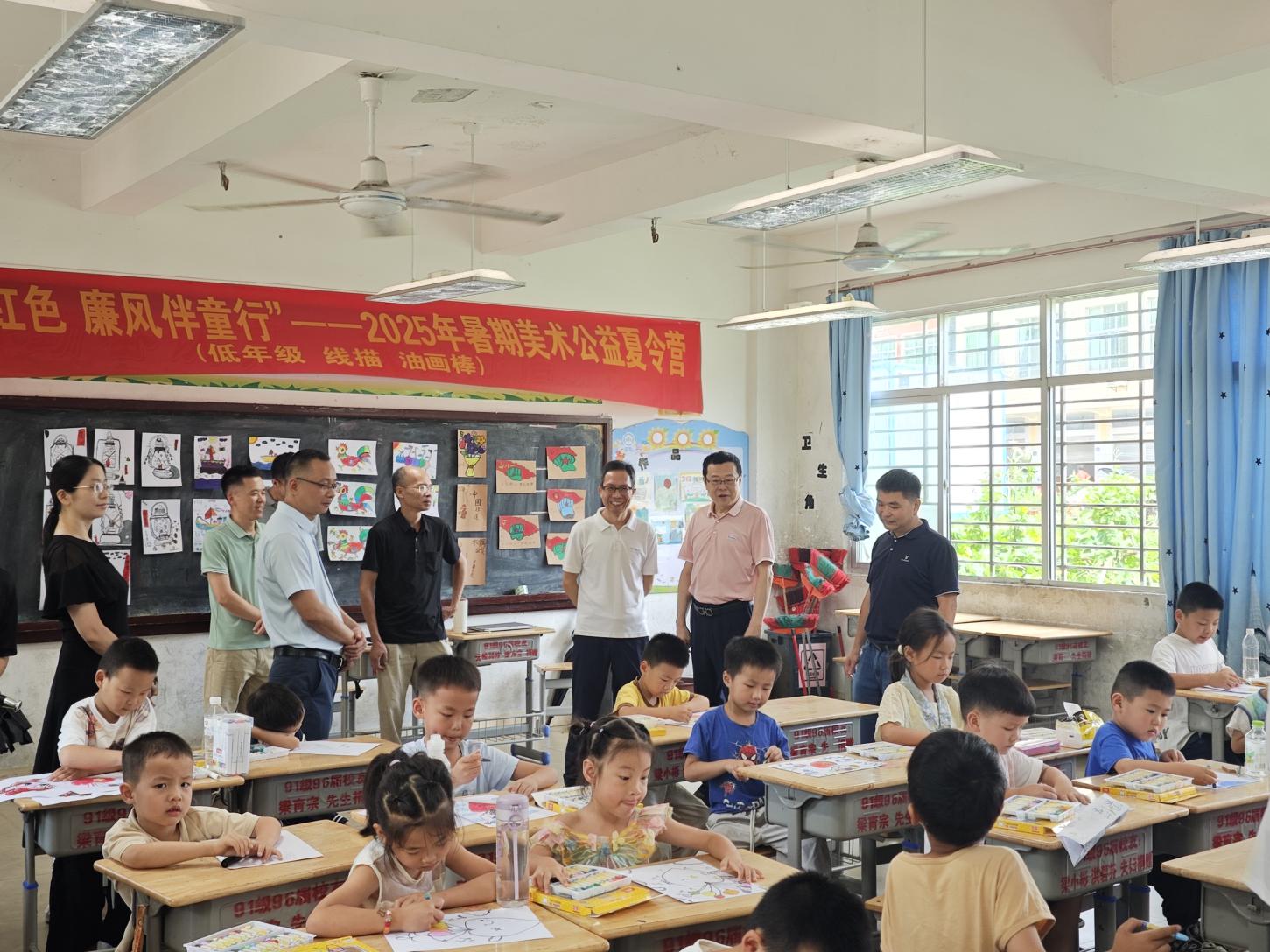 715日,王宝山带队前往南安市翔云中心小学,看望慰问“童心绘红色・廉风伴童行”暑期社会实践队开展的支教活动,并参加座谈会