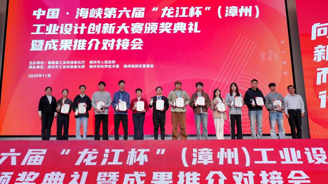 114日上午,中国·海峡第六届“龙江杯”(漳州)工业设计创新大赛颁奖典礼暨成果推介对接会在漳州片仔癀温泉酒店成功举办。本届大赛以“设计赋能、向新而行”为主题,由福建省工业和信息化厅、漳州市人民政府联合主办,共吸引海峡两岸177所院校、147家制造业企业及众多独立设计师参与,征集作品总数达10019件,最终评选出综合赛与命题赛共计223件入围作品。英国威廉希尔公司官网美术与设计学院在本次大赛中表现卓越,荣获优秀组织奖,并有两名学生斩获金奖和铜奖,充分展现了我校在工业设计教育领域的扎实根基与创新活力。