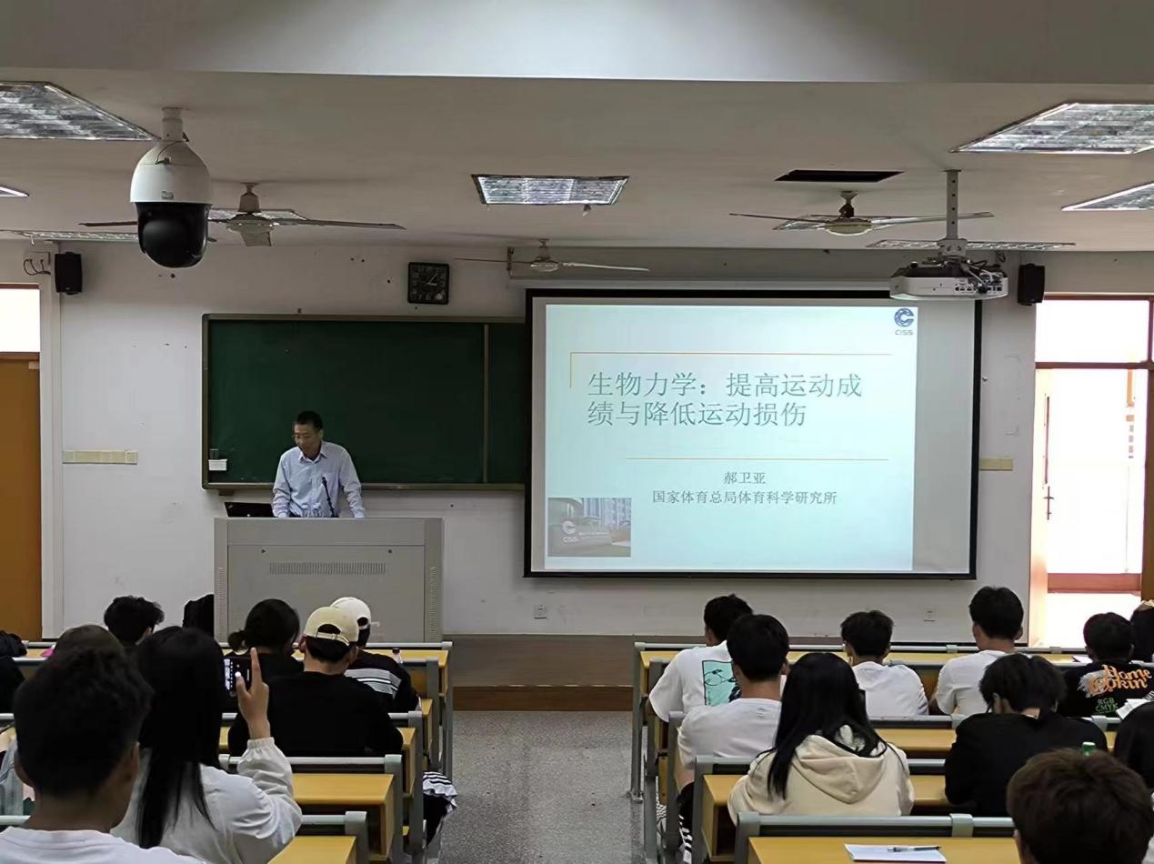 4月27日下午,国家体育总局体育科学研究所研究员、“新世纪百千万人才工程”国家级人才、国务院政府特殊津贴专家、博士生导师郝卫亚研究员在荣茂402教室为我院师生作了题为《运动损伤生物力学研究》的专题讲座。体育学院一百多名学生代表参加了本次讲座。