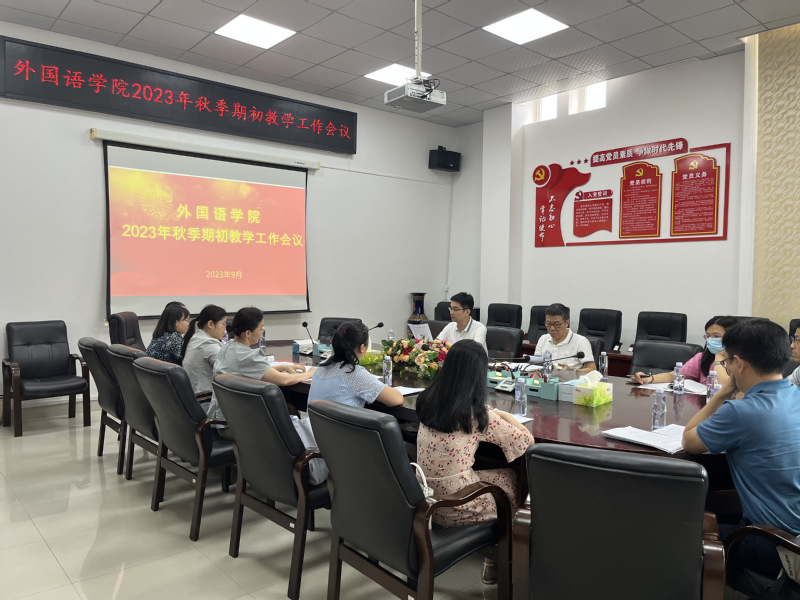 9月21日下午,外国语学院在外113会议室召开2023年秋季期初教学工作会议,会议由分管教学副院长主持,学院院长、各专业(部)负责人、教学秘书、教学管理人员参加会议。