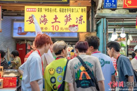 营员们也品尝西街特色小吃,吴氏手工麻糍、安海土笋冻、牛肉饼、亚佛润饼皮、侯阿婆肉粽……营员们和志愿者们在自由行中友好交谈,品尝美食,气氛欢快,友谊也在无形中加深。