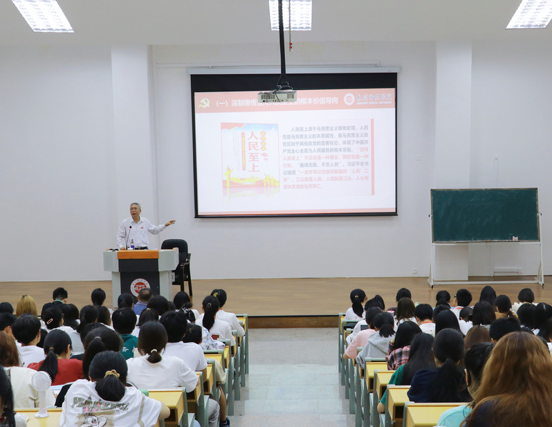陈晓风从历史和现实维度,详细讲解了一百多年来,中国共产党善于用科学理论统一思想、凝心铸魂的优良传统,他说,这是我们党团结带领中国人民在革命建设和改革开放各个时期不断取得一个又一个胜利的制胜法宝。他指出,在推进现代化强国建设的新征程中,要全面系统深入学习领会习近平新时代中国特色社会主义思想,准确把握和运用好“六个必须坚持”世界观方法论,以及贯穿其中的立场观点方法;“两个结合”是指引我们在新的历史条件下把握主动、赢得未来的重要遵循,是开辟和发展中国特色社会主义的必由之路。他希望同学们要增进对习近平新时代中国特色社会主义思想的政治认同、思想认同、理论认同、情感认同,自觉把读书求知作为一种精神追求和生活方式,提高政治能力、思维能力、实践能力,做有理想、敢担当、能吃苦、肯奋斗的新时代好青年。