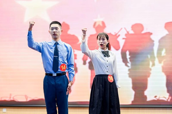 比赛现场,皇甫彦滋、赖泽涵以《追随英雄脚步,青春挺膺担当》为题,深情讲述了“海空卫士”王伟的英雄事迹,并结合自身军人家庭和经历实际,号召广大青年学子追随英雄脚步,矢志报效祖国,表达了当代青年大学生的家国情怀,精彩的演讲赢得了观众的阵阵掌声。