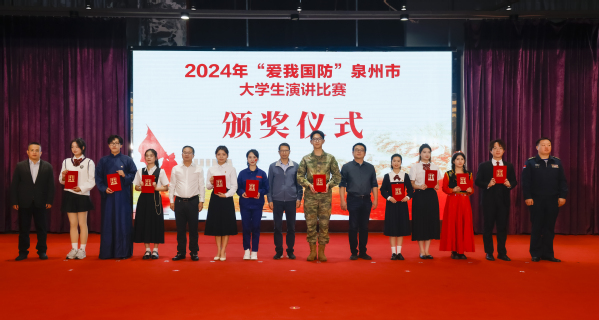 11月20日,由中共泉州市委宣传部、市教育局、市退役军人事务局、泉州军分区政治工作处、共青团泉州市委员会联合主办的2024年“爱我国防”泉州市大学生演讲比赛决赛在我校举行。
