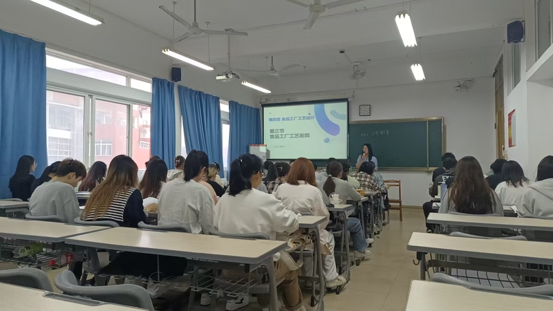 活动首阶段聚焦课堂实践能力提升,开设四场专业核心课程公开课。陈洪彬副教授主讲的《食品贮藏与保鲜》以案例式教学贯穿课堂,结合区域食品产业特色,引导学生剖析食品贮藏技术难点;蒋璇靓老师在《软饮料加工》课程中采用“理论解析+发酵工艺”融合课程知识,深化学生对发酵饮料原理与工艺设计的认知,强化技术转化能力;林娈副教授的《食品化学》课程以“美拉德反应”专题为切入点,运用探究式学习法串联学科前沿与基础理论;郭凤仙副教授的《食品工厂设计与环境保护》课则围绕工艺衡算核心内容,组织学生分组开展食品工厂物料平衡,通过工程计算实践强化学生工程设计能力。每场公开课后,教研室即时组织评课交流,围绕课程思政融入、师生互动设计、高阶性教学目标达成等维度展开深度研讨。