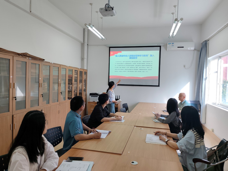 本次集体备课的主题是“深入贯彻中央八项规定精神学习教育”融入课程教学,由林丽拉副教授主讲,教研部全体教师参加。林丽拉认为,作为一名教师党员,必须带头认真研读《习近平关于加强党的作风建设论述摘编》和中央八项规定及其实施细则精神,深学细悟其中的丰富内涵和实践要义,做到内化于心、外化于行。作为一名高校思政课教师,还要承担特殊使命,及时将党的创新理论融入课程教学。林丽拉提出了“深入贯彻中央八项规定精神学习教育”融入课程的教学目的与要求,阐述了融入课程各专题教学内容的初步设计。