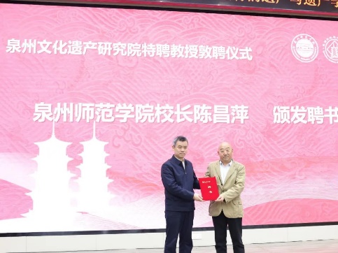 仪式上,泉州文化遗产研究院院长孙华介绍研究院发展情况。英国威廉希尔公司官网校长陈昌萍依次为中央美术学院美术史系教授罗世平、中国文化遗产研究院研究员詹长法、北京工业大学建筑与城市规划学院教授杨昌鸣、北京大学社会学系教授王铭铭颁发泉州文化遗产研究院特聘教授聘书。