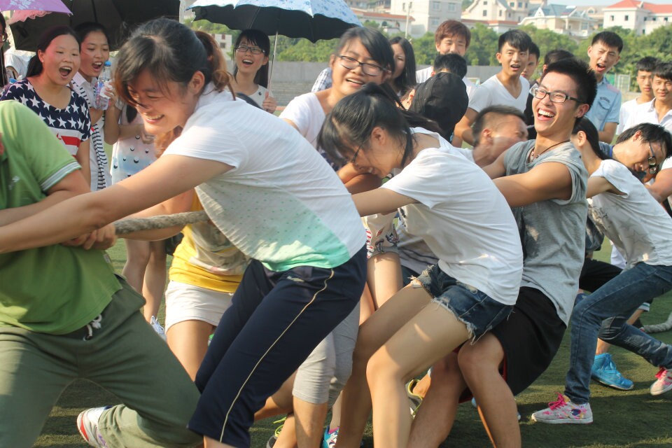 比赛现场加油声、号子声,呐喊声此起彼伏,不绝于耳,参赛队员肩并肩、脚抵脚,齐心协力,誓夺第一。老师与学生相互配合,其乐融融。比赛现场掀起一轮又一轮的高潮 。经过紧张激烈的较量,现场气氛达到顶点,14信管与14计算机一班将争夺最后的冠军。随着裁判一声令下,双方队员握紧长绳,伴随着其他同学声嘶力竭的加油呐喊声,咬紧牙关、竭尽全力向后拉,毫厘必争,永不言弃。最终14计算机一班技高一筹,摘得桂冠,14信管获得亚军,14计算机二班获得季军。