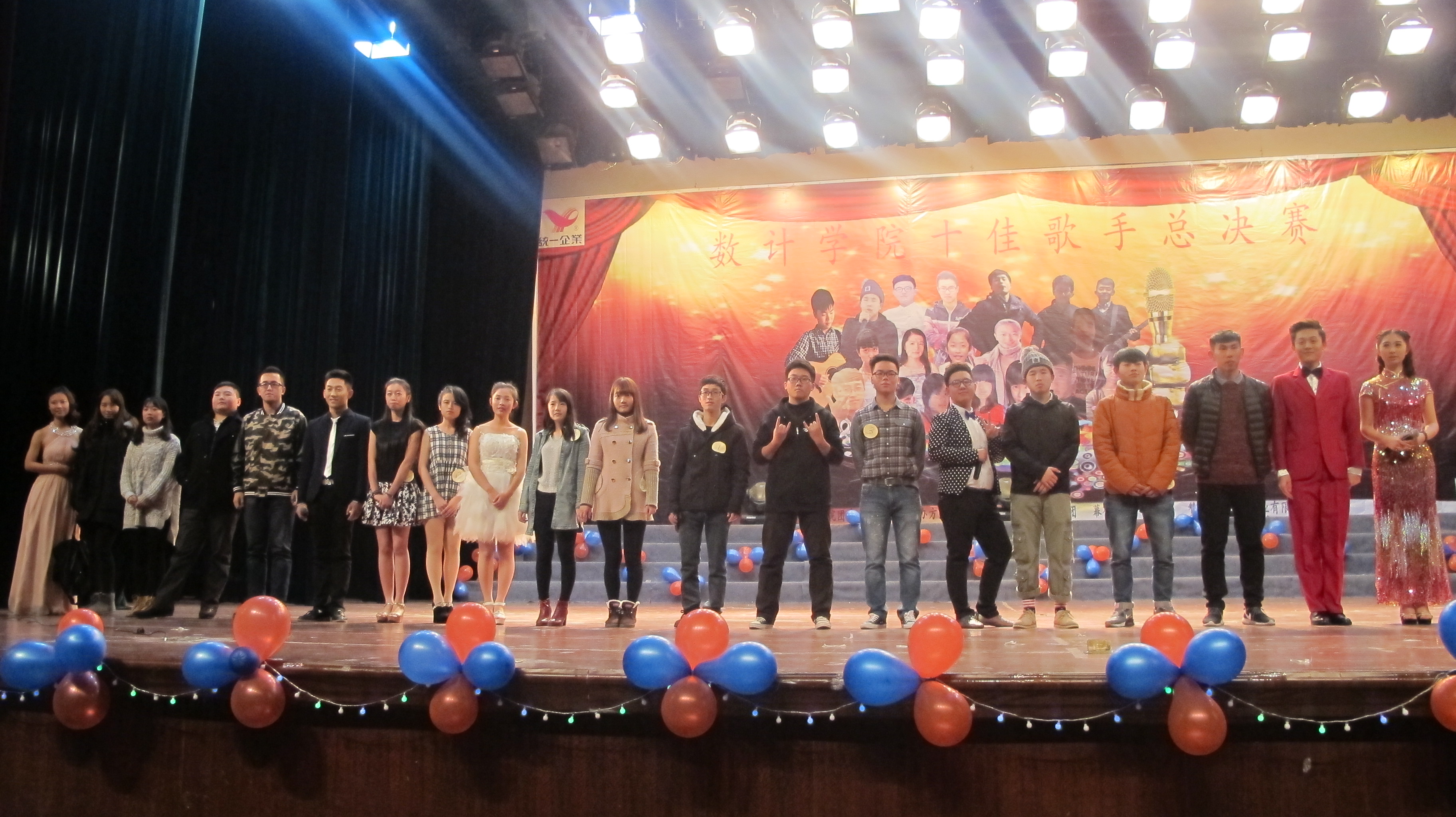 经过三轮的激烈角逐,十七位参赛选手中脱颖而出的十位歌手赢得了2014年数计十佳歌手的称号。14计2樊玉杰摘得了本次大赛的桂冠,第二第三名由14信管付随平和13信计苏飚夺得。