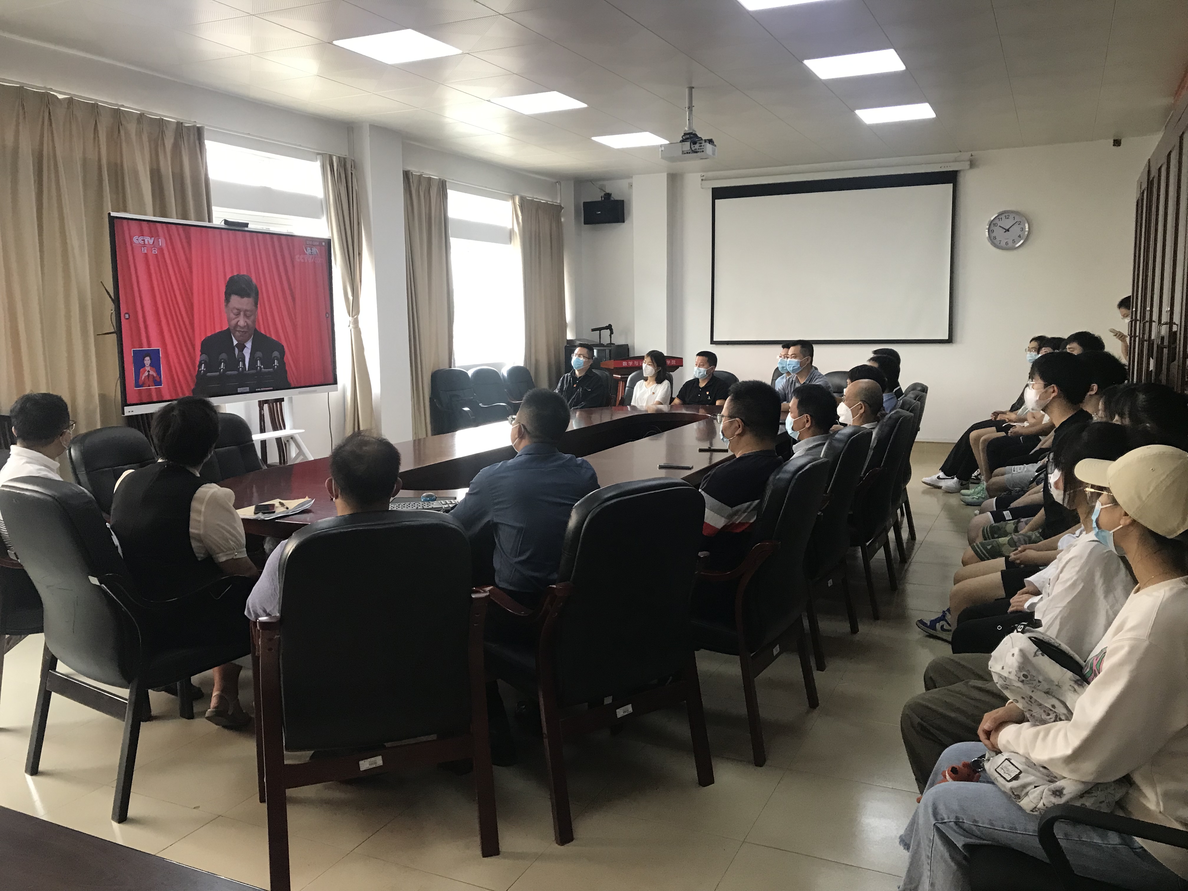 学院高度重视、精心组织,根据实际情况和疫情防控要求,组织师生在会议室、办公室、学生宿舍,通过电视、网站、手机客户端等媒体平台收听收看开幕会盛况。院领导、部门负责人、各支部书记和师生党员代表在理工楼209会议室集中收看了大会开幕会直播。