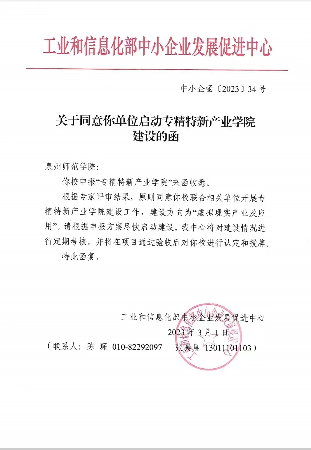 近日,工业和信息化部向我校发函,我校“虚拟现实”专精特新产业学院建设项目正式获批立项。