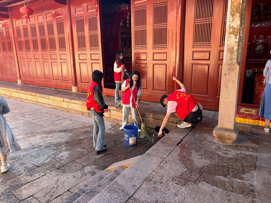 12月初,23级数据科学与大数据技术1班团支部组织支部成员参加天后宫清洁活动,志愿者们认真细致地清扫了天后宫的每个角落,并与天后宫工作人员交流互动中,加深了对传统文化的了解。这次活动不仅提升了同学们对文化遗产保护的意识,也增强了他们对传统文化的尊重和传承的责任感。