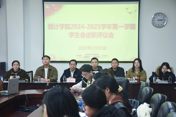 2月27日,数计学院在理工209召开学生会述职评议大会,院党委副书记黄争红、全体辅导员、学生会全体成员和学生代表参加。会议由团委负责人张佳雷主持。