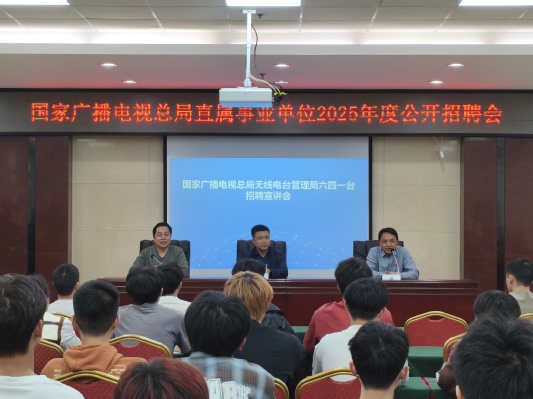 宣讲会以筑梦广电事业 共绘职业蓝图为主题,通过播放国家广播电视总局无线电台管理局及六四一台专题宣传片,全景呈现行业发展历程与技术创新成果。在政策解读环节,人事科负责人系统介绍了涵盖技术维护、网络安全等领域的10个招聘岗位,着重解析了薪酬体系、福利保障及职业发展通道,特别针对应届毕业生关切点制作了职业发展路径图。