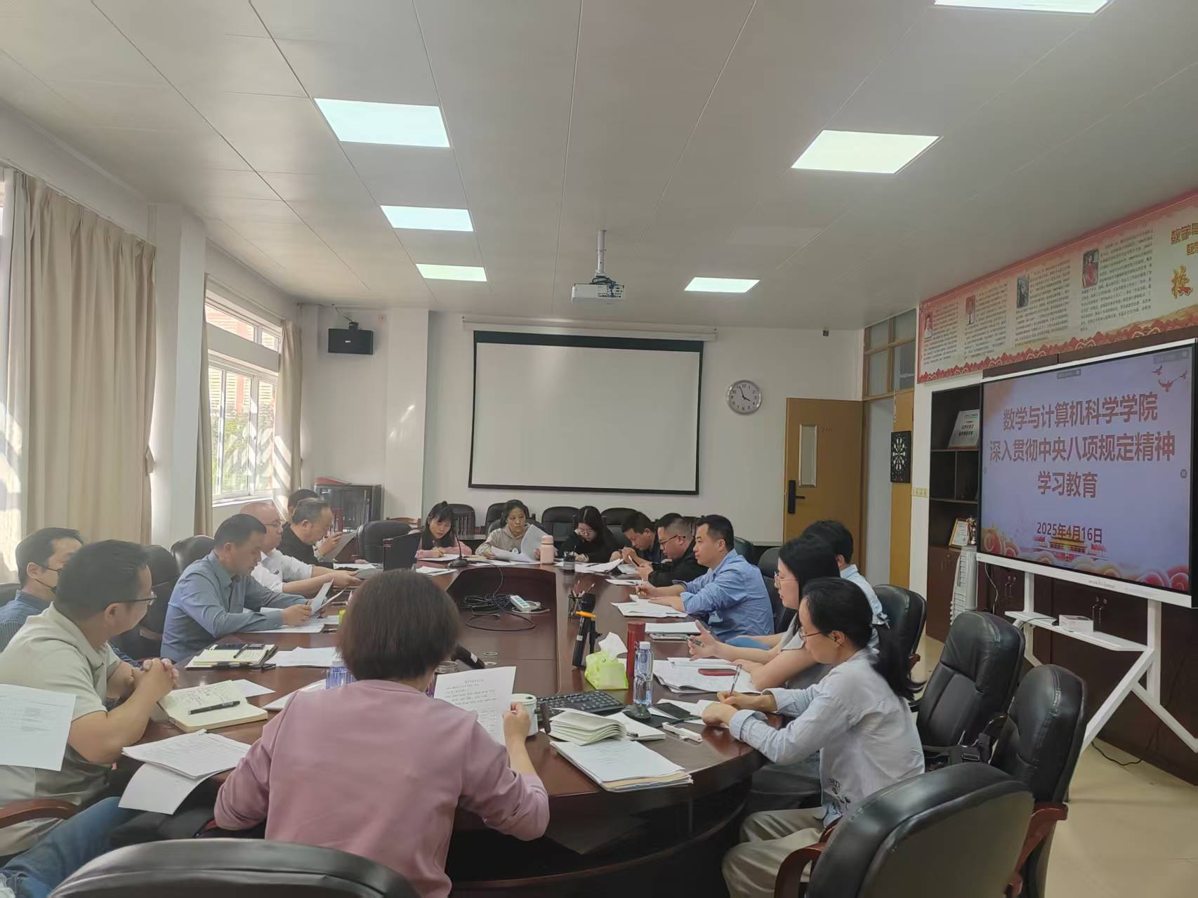 4月16日下午,数计学院党委召开深入贯彻中央八项规定精神学习教育读书班暨党委理论学习中心组学习会,学习习近平总书记关于加强党的作风建设的重要论述。学院党委书记陈章益主持并做重点发言,学院党政领导、党委委员、党支部书记参加学习会。