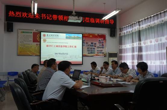 6月27日下午,校党委朱世泽书记带领党政办、组织部、人事处等职能部门负责人莅临陈守仁工商信息学院调研指导,学院党政负责人、办公室及各专业负责人参加座谈会。