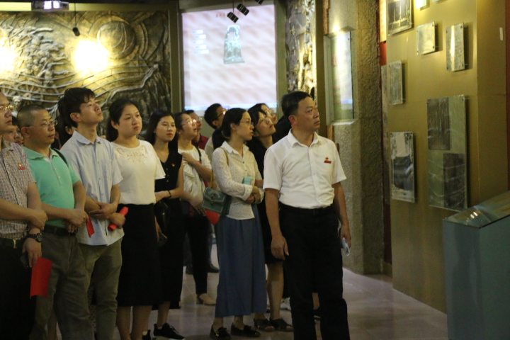 在烈士纪念碑前,全体党员怀着无比崇敬的心情为革命烈士敬献花篮,并鞠躬默哀。在学院党委书记胡凌松带领下,大家举起右拳,面向党旗,重温入党誓词。教师党员代表在发言中表示,要继承先烈精神,坚守共产党员理想信念,增强“四个意识”、坚定“四个自信”、坚决做到“两个维护”,在校党委坚强领导下,忠于职守,努力工作,为学校学院建设发展贡献自己的力量。随后,在讲解员引导下,全体教职工党员参观了革命烈士纪念馆,认真聆听革命先烈的英勇事迹,缅怀革命先烈的丰功伟绩。
