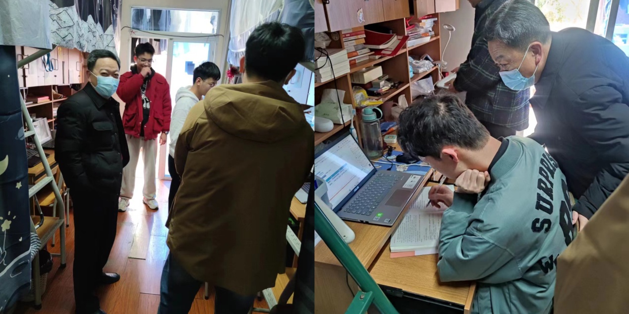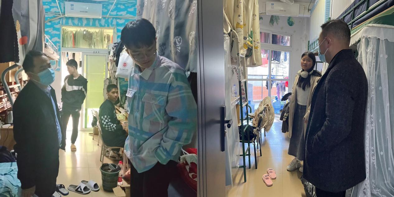 走访过程中,学院领导和辅导员老师亲切地与学生交谈,询问返校后的日常生活和学习情况,叮嘱同学们要及时调整好学习状态,尽快适应新学期的生活。引导同学们要关心关注关爱自身心理健康,做好自身健康监测等常态化疫情防控工作,如有发热等症状要及时报告学院。还要注意人身与财产安全、电动车骑行安全,警惕新型网络诈骗等。鼓励同学们要尽早做好新学期学习规划,端正学习态度,严格遵守学校以及学院的各项规章制度。有什么困难和意见建议,及时向辅导员老师和学院领导反映。
