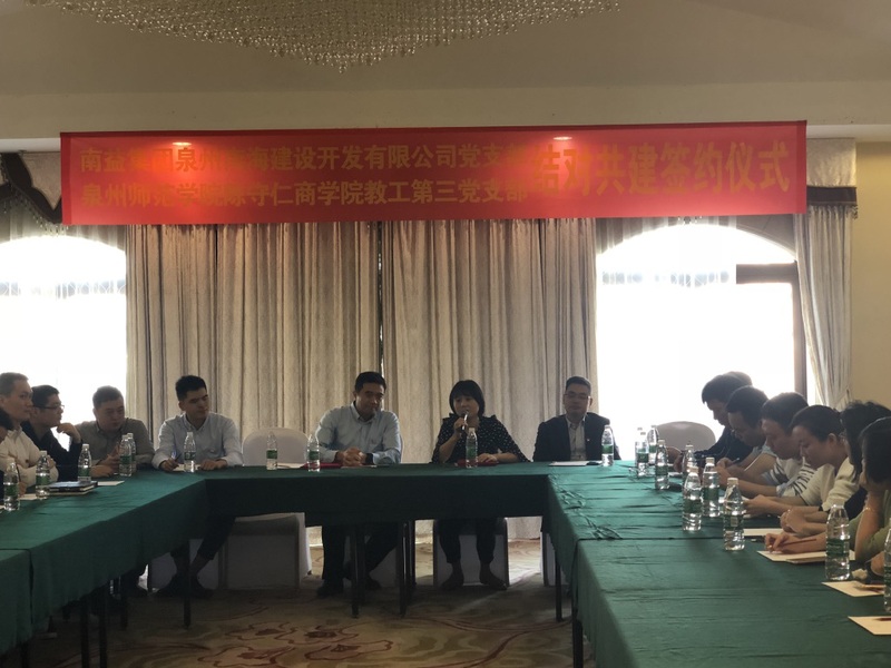 为深入学习贯彻党的十九大精神,探索在新时代下高校基层党建工作的新思路、新模式、新方法,进一步推进高校服务地方、服务民营企业,陈守仁商学院教工第三党支部赴南益集团开展校企共建党支部活动,并与南益集团泉州南海建设开发有限公司党支部举行校企支部结对共建签约仪式。南益集团泉州南海建设开发有限公司党支部书记陈东越及其支部全体党员参加了本次活动。